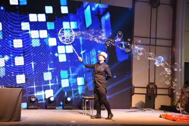 随后,互动视频秀、外籍乐队、环球旅游小姐、园区企业独唱、花式调酒、童星独唱、泡泡秀魔术互动等精彩节目登场,给来宾们带来了无限的欢乐。同时晚宴设置的幸运抽奖环节更是将整个晚宴推向高潮。