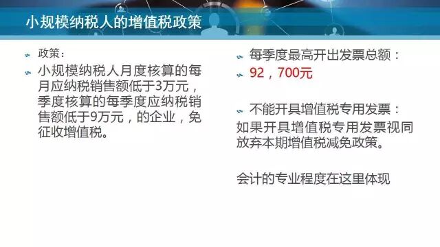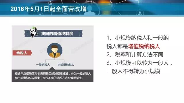 本次课程主要从企业增值税、所得税、营改增后税收筹划及沈阳市最新优惠政策四个方面进行详细剖析与解读。自2016年5月1日全面实行营改增以来,增值税问题成为各企业老板及财务人员的热议话题。课上,张老师从企业季度九万元销售额免征增值税、过路过桥费发票可以抵扣、异地住宿允许抵扣、固定资产加速累积折旧等四个方面进行纳税筹划,减轻企业纳税负担。